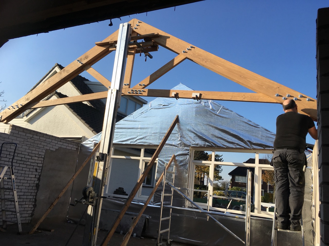 Het maken van een ontwerp voor het verbouwen van een bestaand kantoorgebouw in de tuin van een woning tot zelfstandige woning. Hierbij is het gehele dak vervangen en de woning compleet verduurzaamd. Tijdens de uitvoering heb ik ook de eigenaar/ bewoner ondersteund bij het uitvoeren van de verbouw werkzaamheden. Gerealiseerd in 2018.